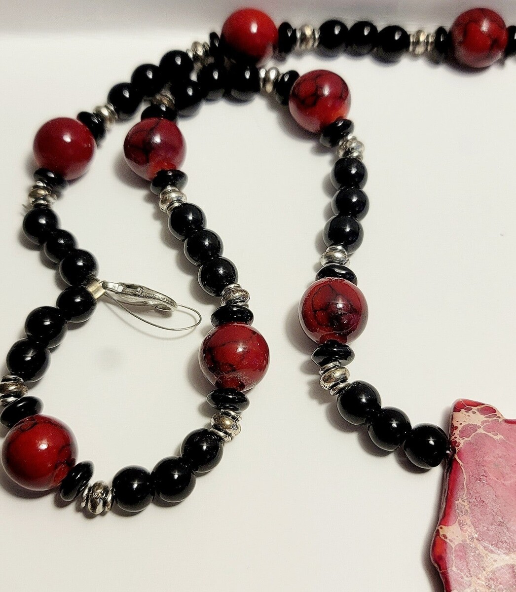 - Vintage Costume Handmade Necklace Maine 19" Polished Pink Red Agate B65