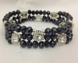 - Vintage Costume Jewelry, 3 Strand Black Glass Bead, Rhinestone Bracelet BCLT24