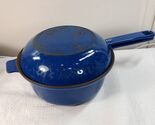 Vintage Cousances Le Creuset #18 Sauce Pan Saute Lid Enamel Cast Iron Blue