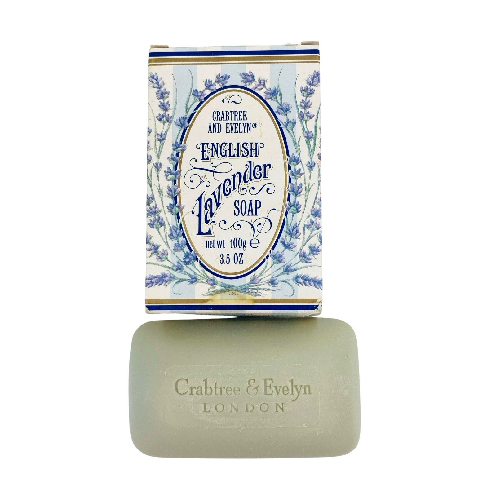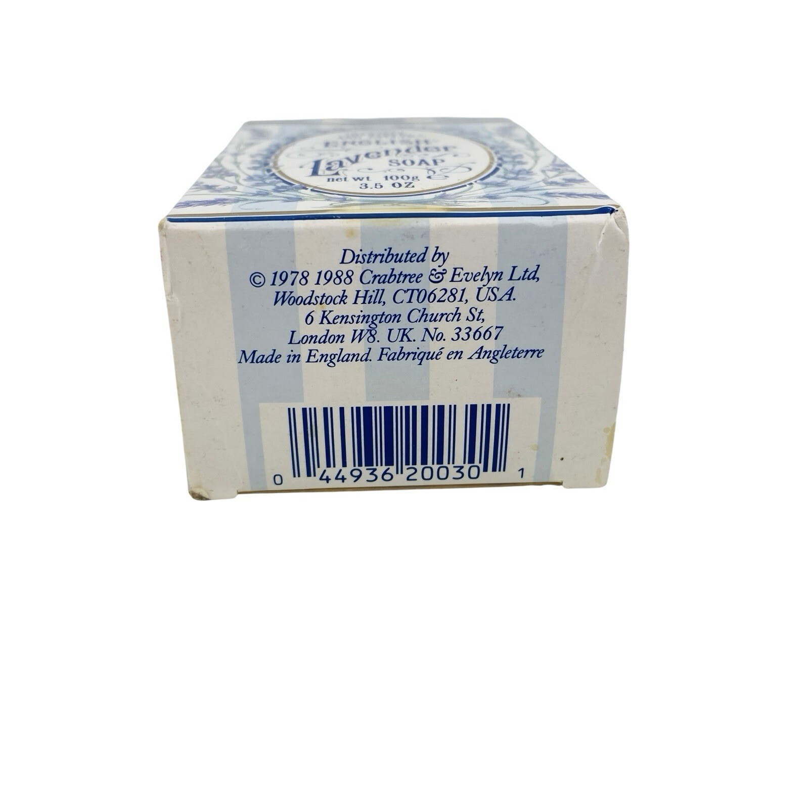 One new-old-stock vintage Crabtree Evelyn English Lavender bar soap in original box. 3.5 oz. Made in England. Box has some overall light wear and a small spot on the front; please see pictures for exact condition. From a smoke-free home. Ships next day!