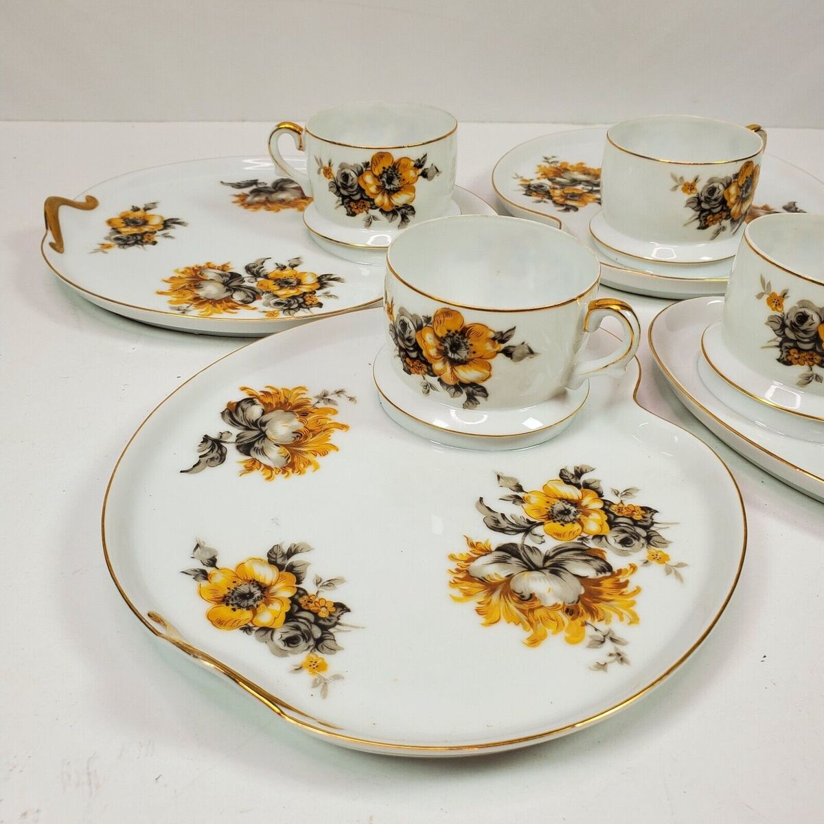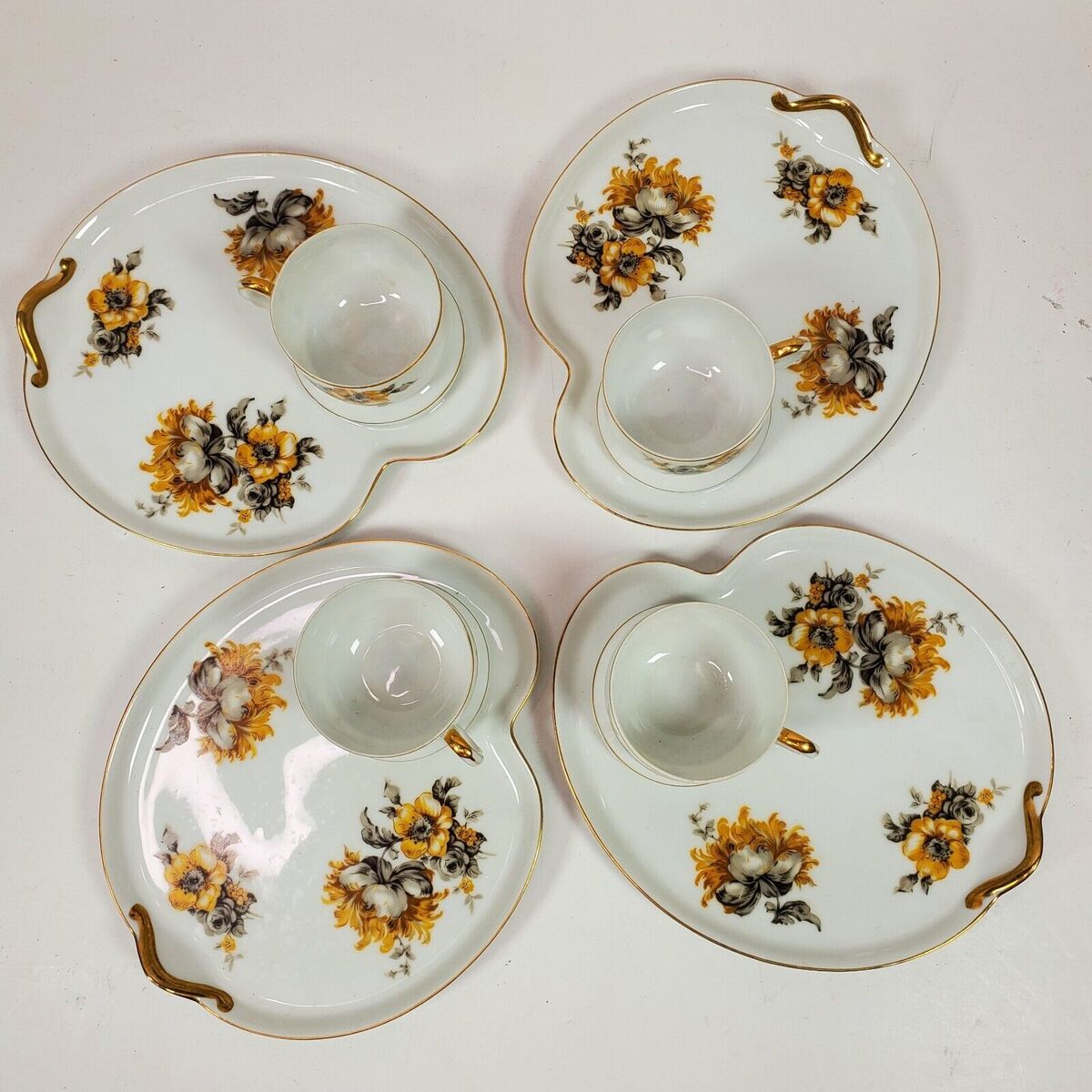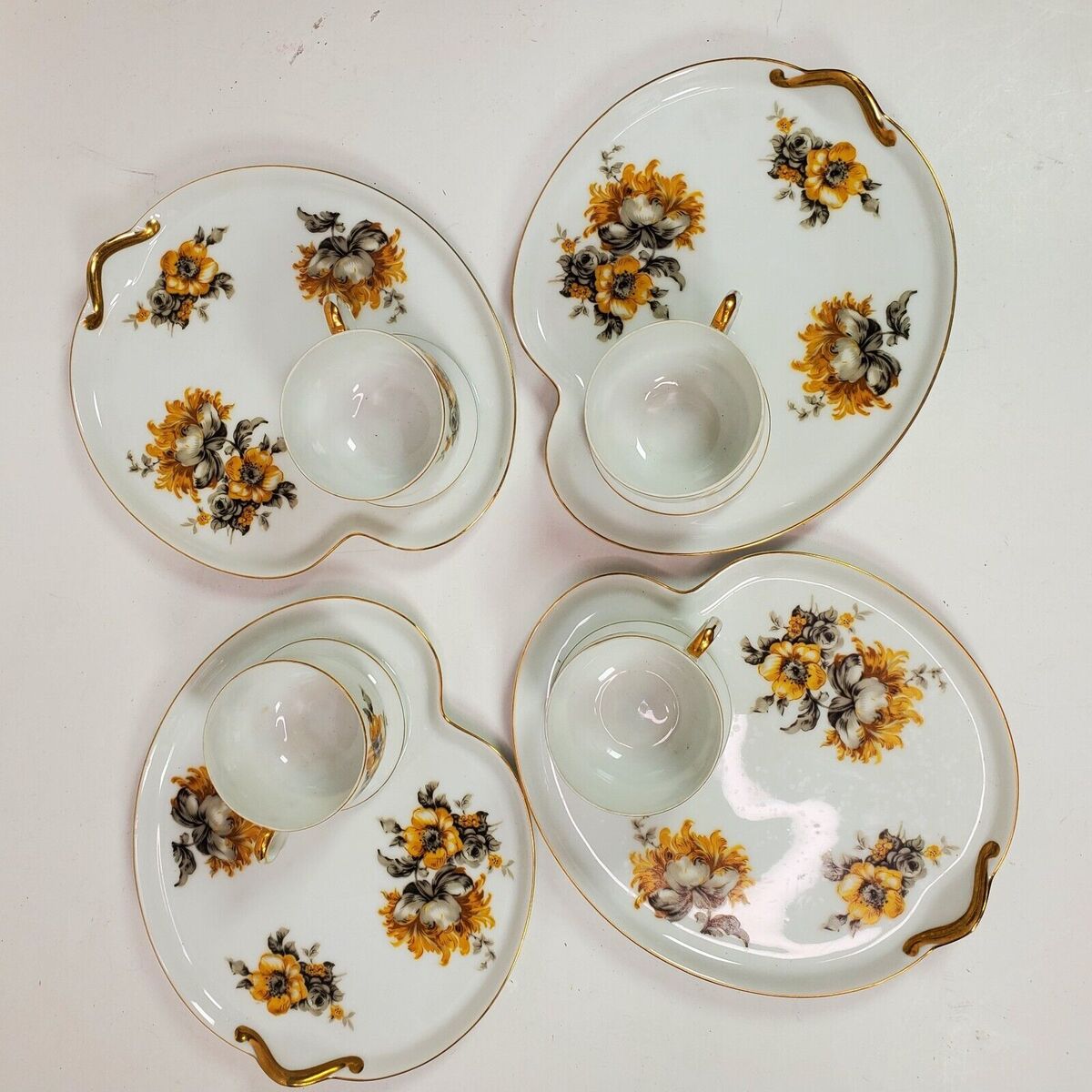 - Vintage Craftsman China Eggshell Pattern Snack Tray & Cup 4 SETS
