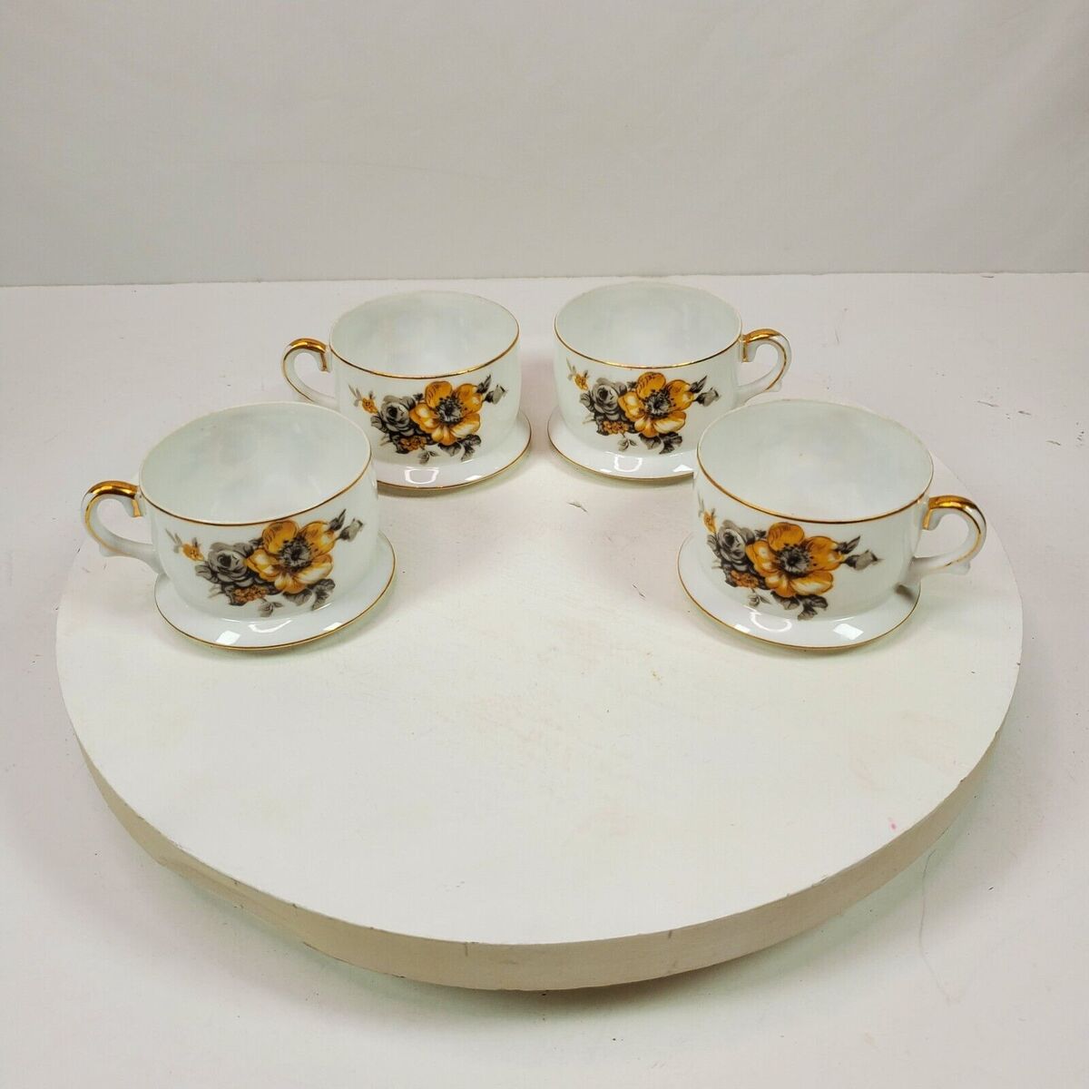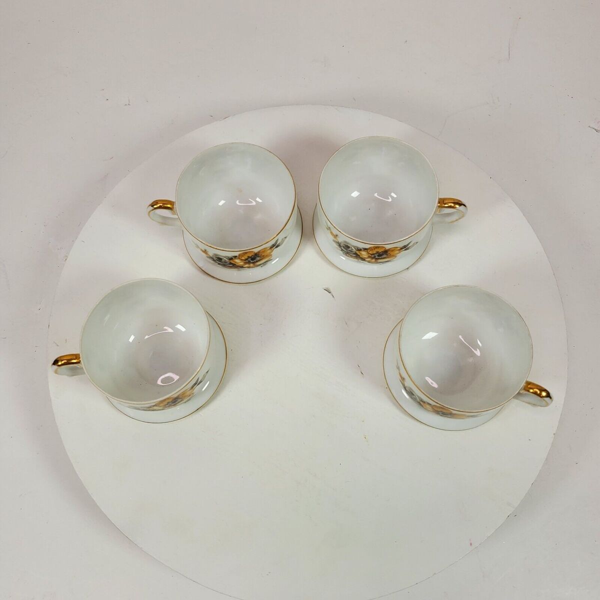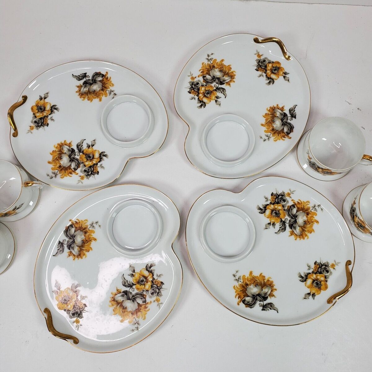 - Vintage Craftsman China Eggshell Pattern Snack Tray & Cup 4 SETS