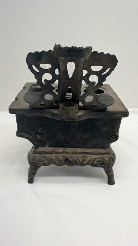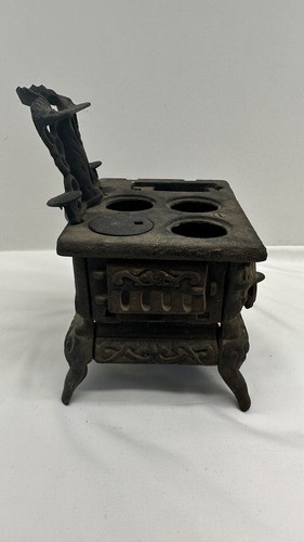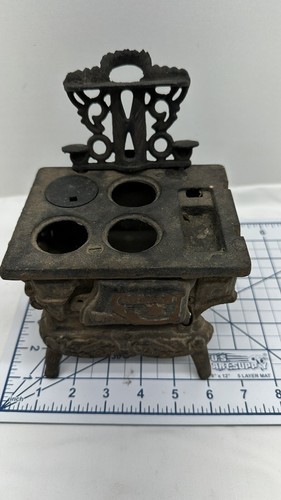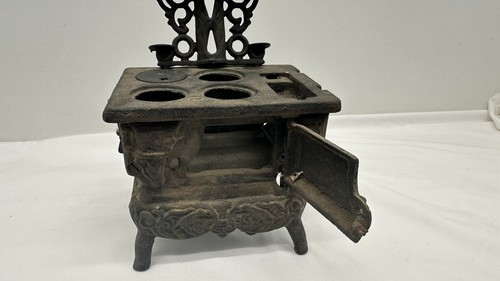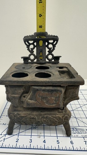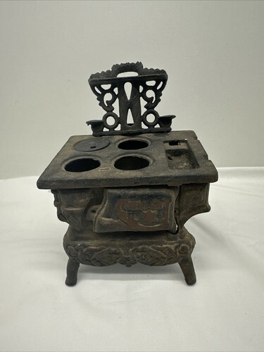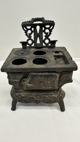 Missing parts. Add a touch of nostalgia to your vintage toy collection with this miniature cast iron stove from Crescent. Made in the USA in 1940, this stove is an excellent addition for collectors of antique toys. It's made of high-quality cast iron, ensuring it can withstand the test of time.