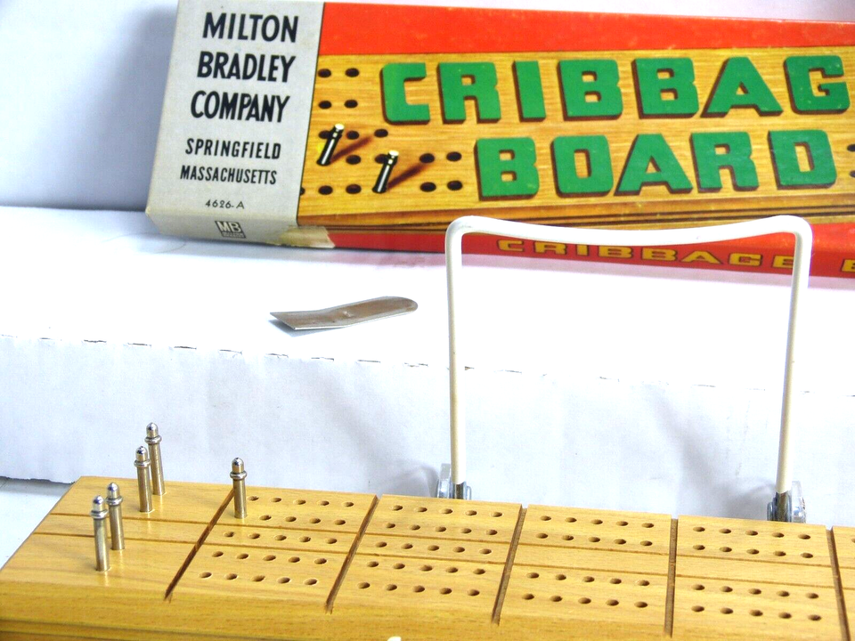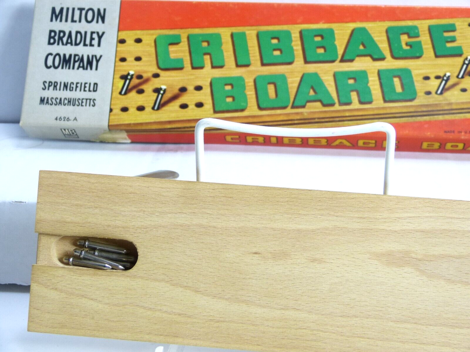 Vintage Cribbage Board Milton Bradley 4626-A Box Instruction Sheet 5 pegs