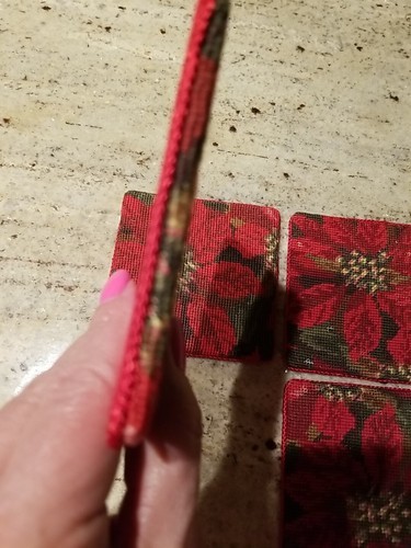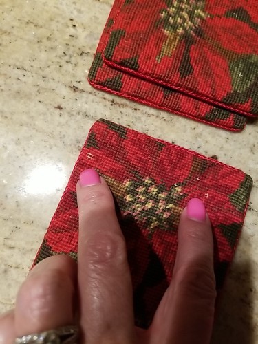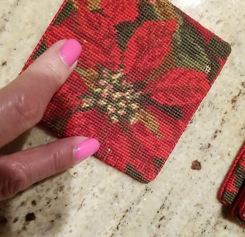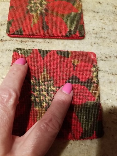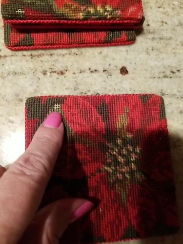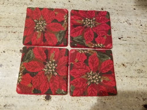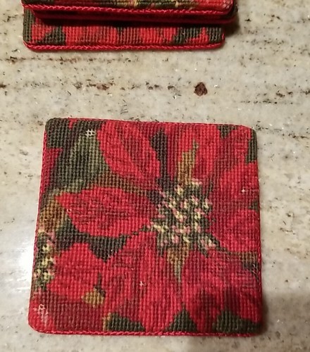 - Vintage Cross Stitch Coasters Set of 4 Christmas Red Poinsettia With Trim Read