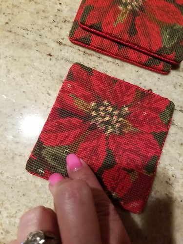 Coasters are handmade from a smoke free home. Some stitches are MISSING, see pics.