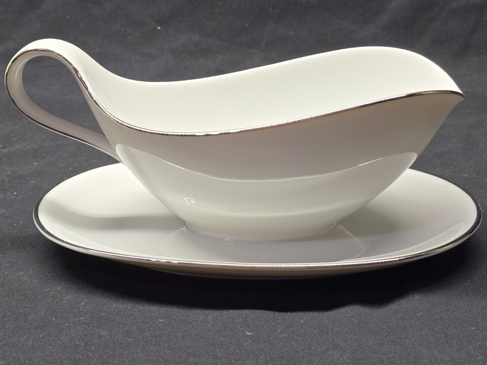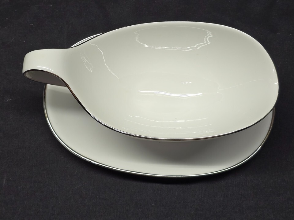 - Vintage CROWN BAVARIA Gravy Boat With Attached Underplate ELEGANCE Platinum Trim