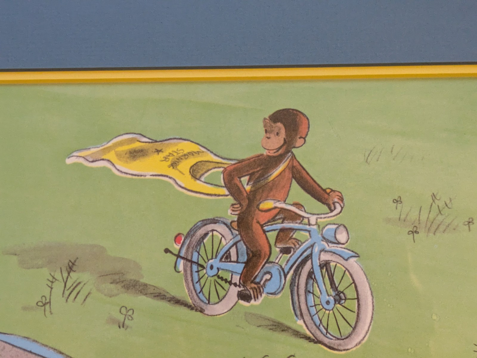 Cet article sur le theme de George Vintage Curious George dispose d'un cadre blanc avec une conception decorative d'un velo, d'un lac, d'un bateau en papier et d'un canard. Il a des dimensions de 19 pouces de hauteur et 16 pouces de longueur. Le materiau utilise comprend de l'argent et du papier, creant une piece unique et charmante de marchandises d'animation a collectionner. Mesures d'impression 12,5 x 9,5 pouces