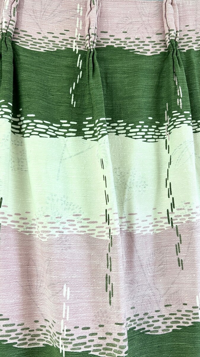 - Vintage Curtains Drapes (2) Pinch Pleat Panels MCM Pink Green 93" Long Rayon
