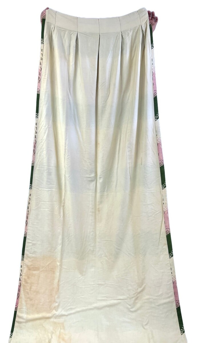 NOTE: The colors are 50s pink, olive green, and ivory. Color seemed to lean towards green where the ivory was when photographing, and I couldn't get it out in some of them.And there's a black and faint gray floral print hidden in the stripes.Very unique!