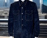 1970's Vintage Studded Velvet Velour Button Front Shirt Blue Rock Concert