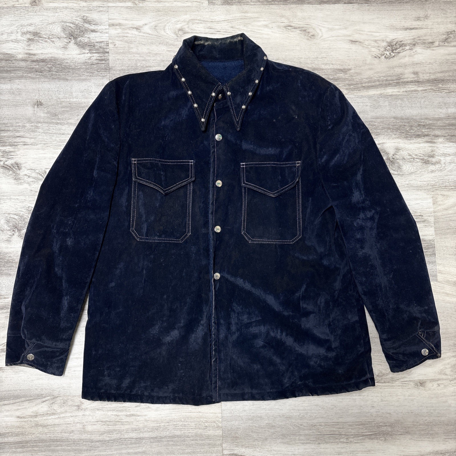 Original 1970's vintage. Studded collar with snap front with chest pockets. Rock Star clothing style