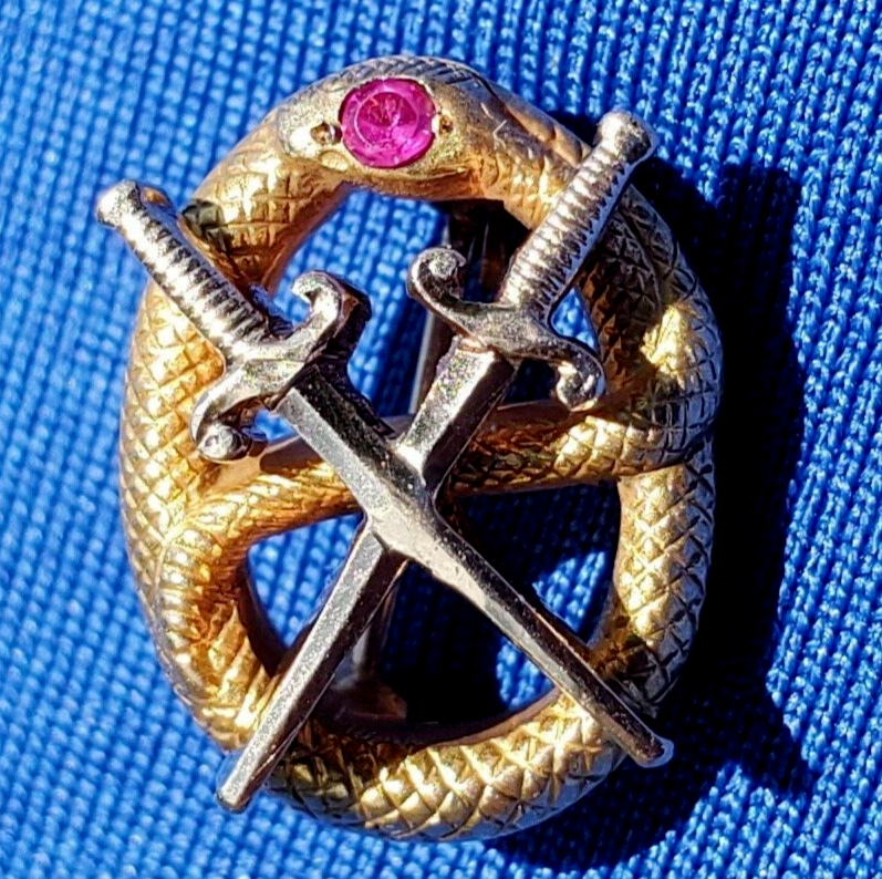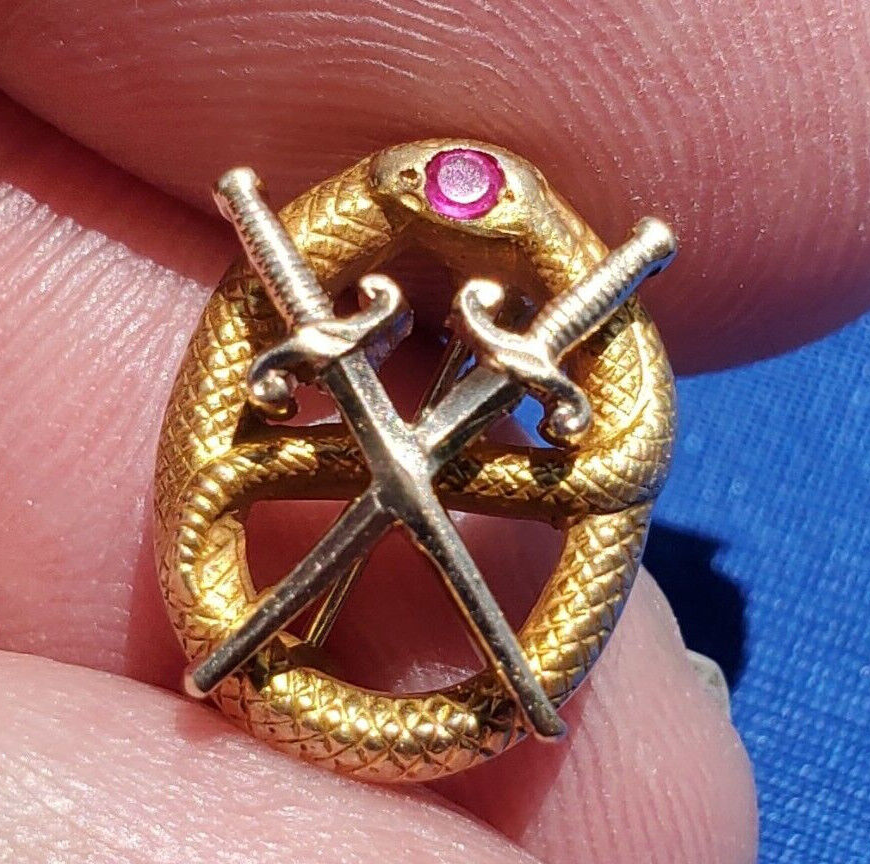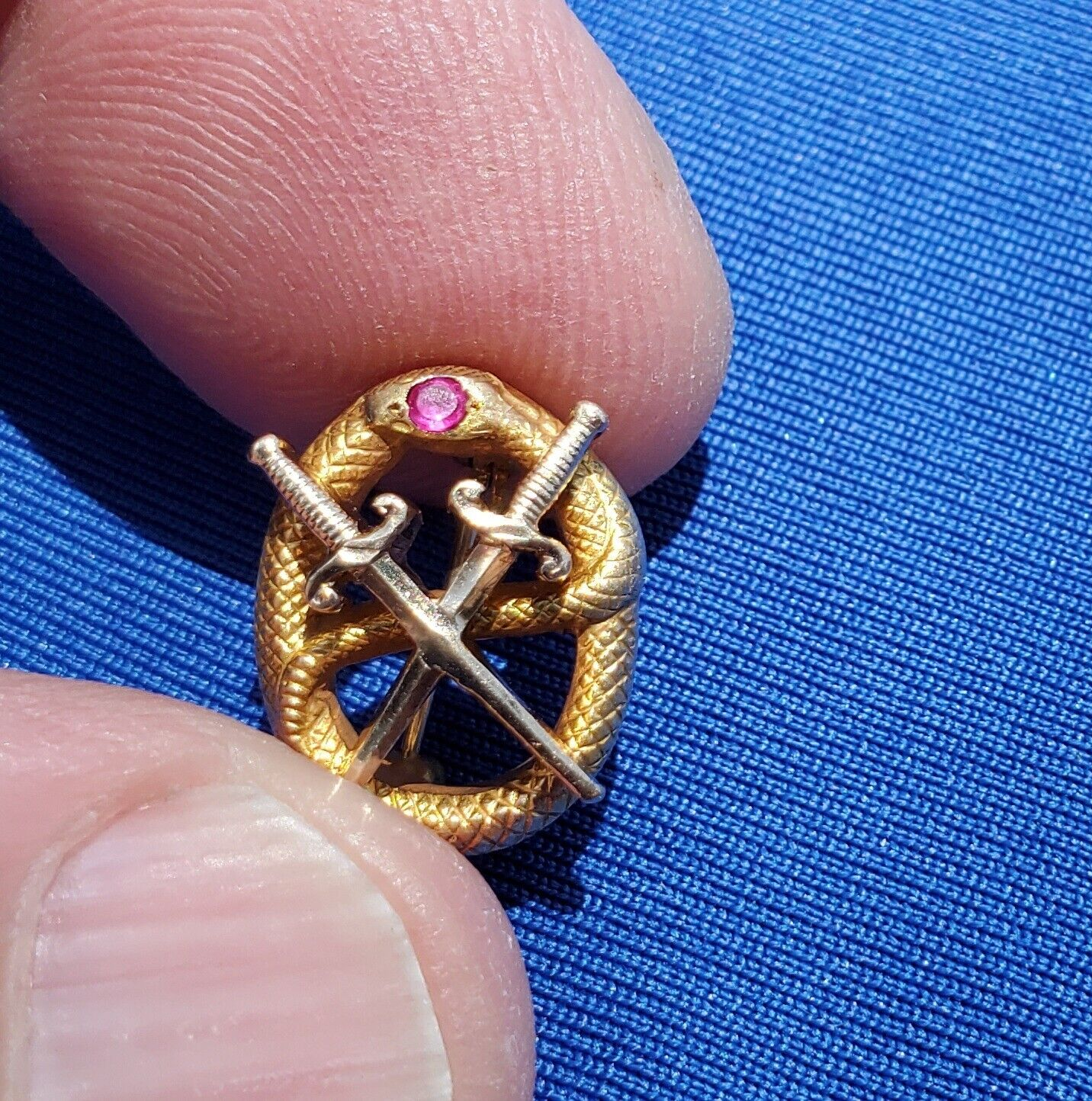 - Vintage Deco Serpent Solid Gold Pin EXOTIC Antique Snake Brooch