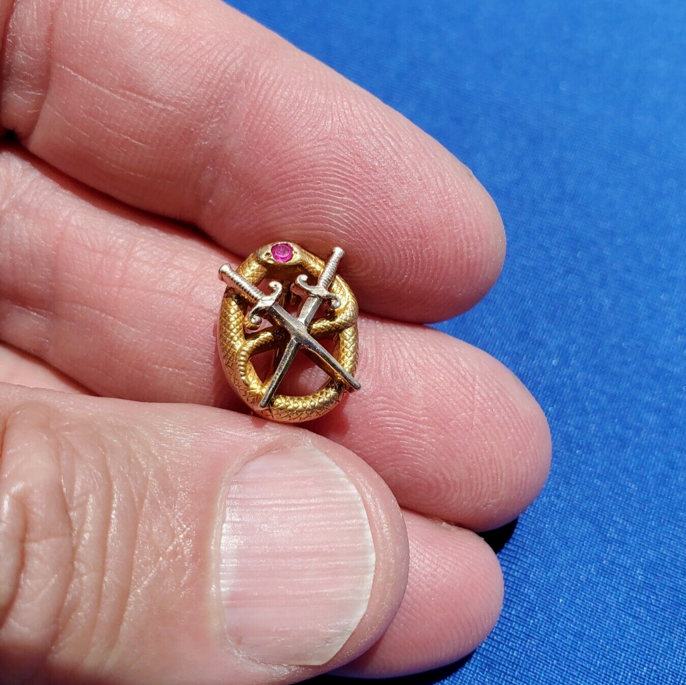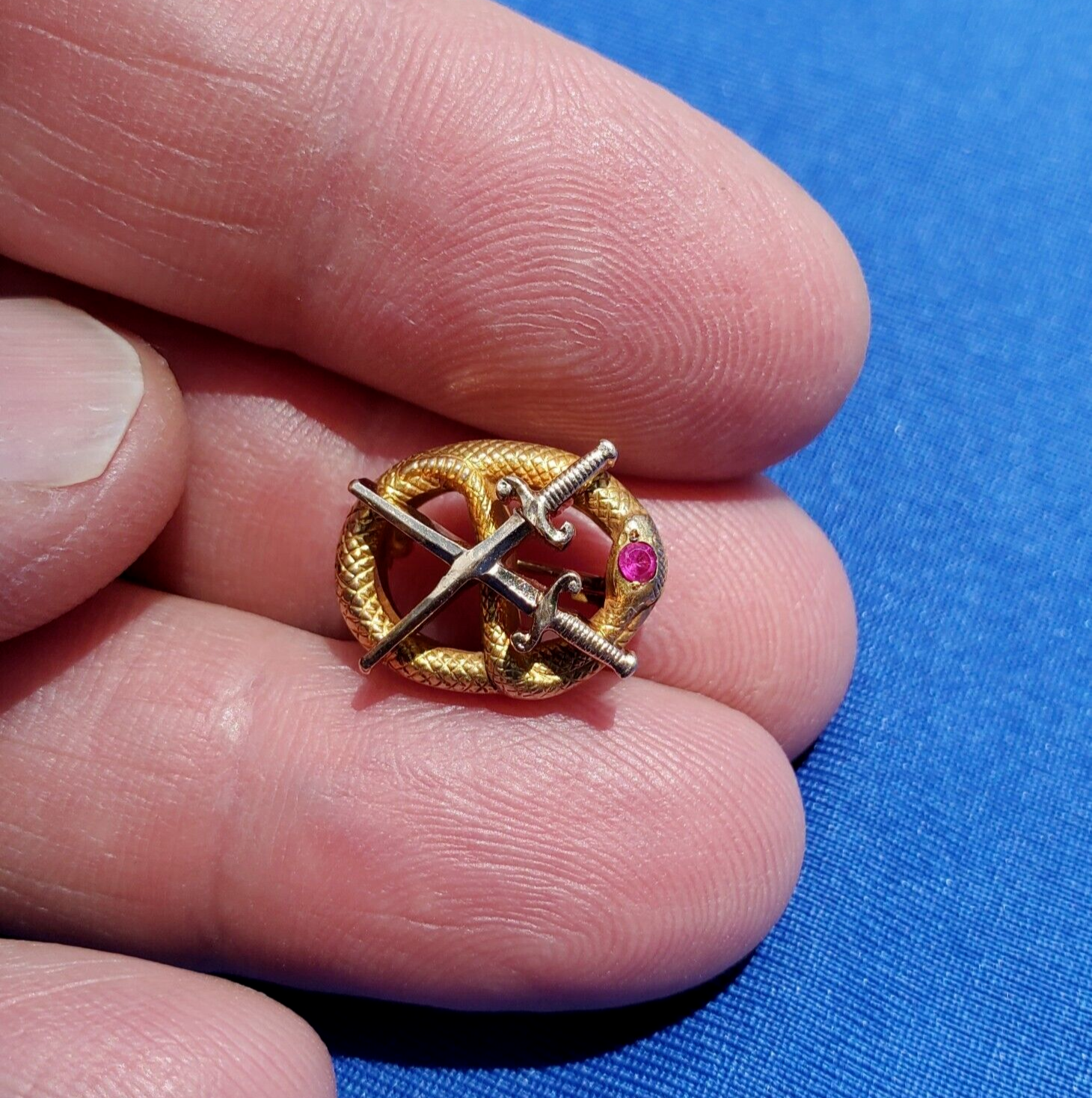 Vintage Deco Serpent Solid Gold Pin EXOTIC Antique Snake Brooch