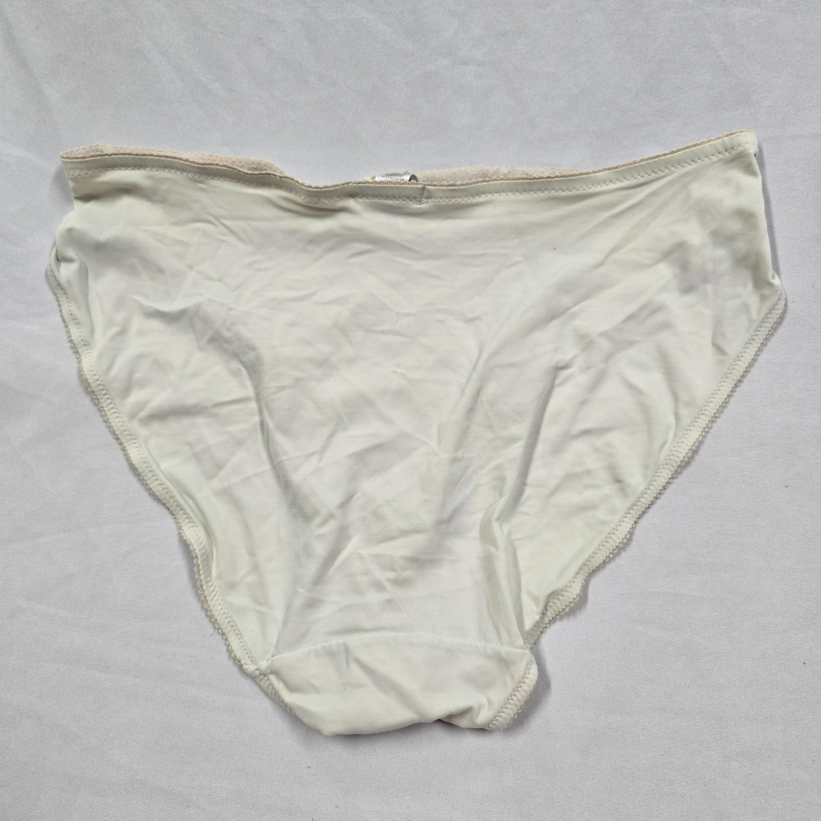 Used, no rips, stains or holes. I think these were shapewear but have lost their elasticity, the elastic is relaxed in the legs and waist. This enables the legs to be a very high cut leg indeed, and makes them very comfortable. Smoke-free home.
