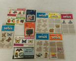 Vintage Dennison seals sticker lot fruit flower holiday birds animal doll seals