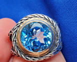 Vintage Designer 14k Gold & Sterling Silver 925 London Blue Topaz RING Size 7.75