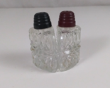- Vintage Diamond Cut Glass Spade Bakelite Lid Mini Salt & Pepper Shakers
