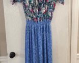 - Vintage Diane Freis Georgette Maxi Dress Smocked Waist floral ruffle Beaded