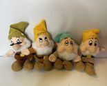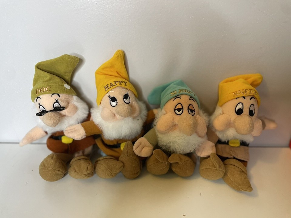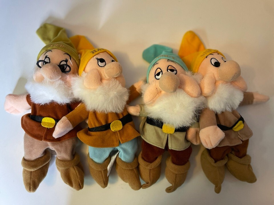 This vintage set of plush toys features the beloved characters from Walt Disney's Snow White and the Seven Dwarfs. Made between 2000-2020, these collectibles are perfect for any Disneyana enthusiast. The set includes four plush toys, featuring the dwarfs from the classic film. The toys are in great shape and are ready to be added to your collection. They are perfect for display, play, or as a gift for a fellow Disney lover.