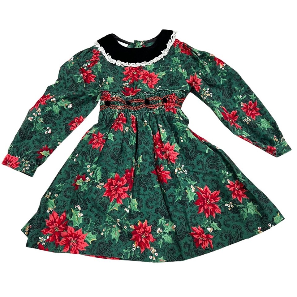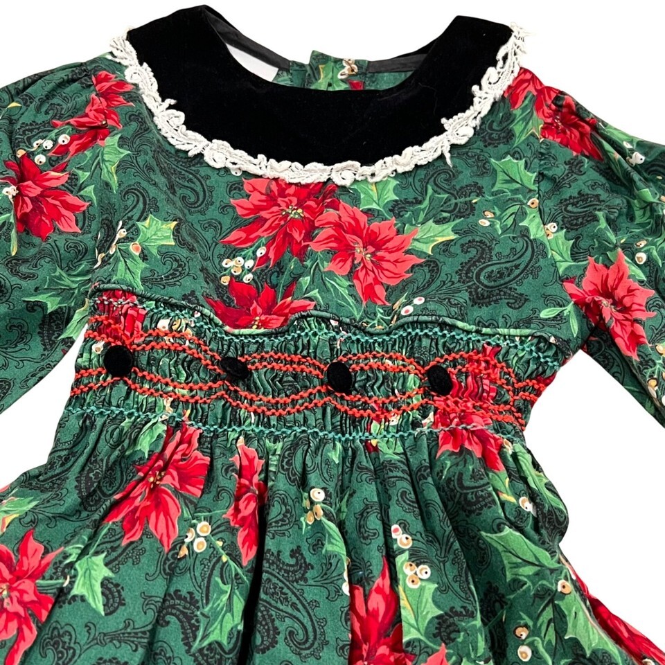 - Vintage Dolly Flinders Girls 4T Christmas Dress Green & Red Floral Lace Collar L