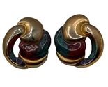 - Vintage Don Lin Earrings Pierced Gold Tone Enamel Statement Jewelry 1980 90s