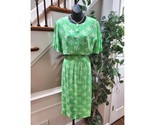 Vintage Donar Hadi Women Green Polyester Short Sleeve Top Knee Length Dress 2 pcs Suit.