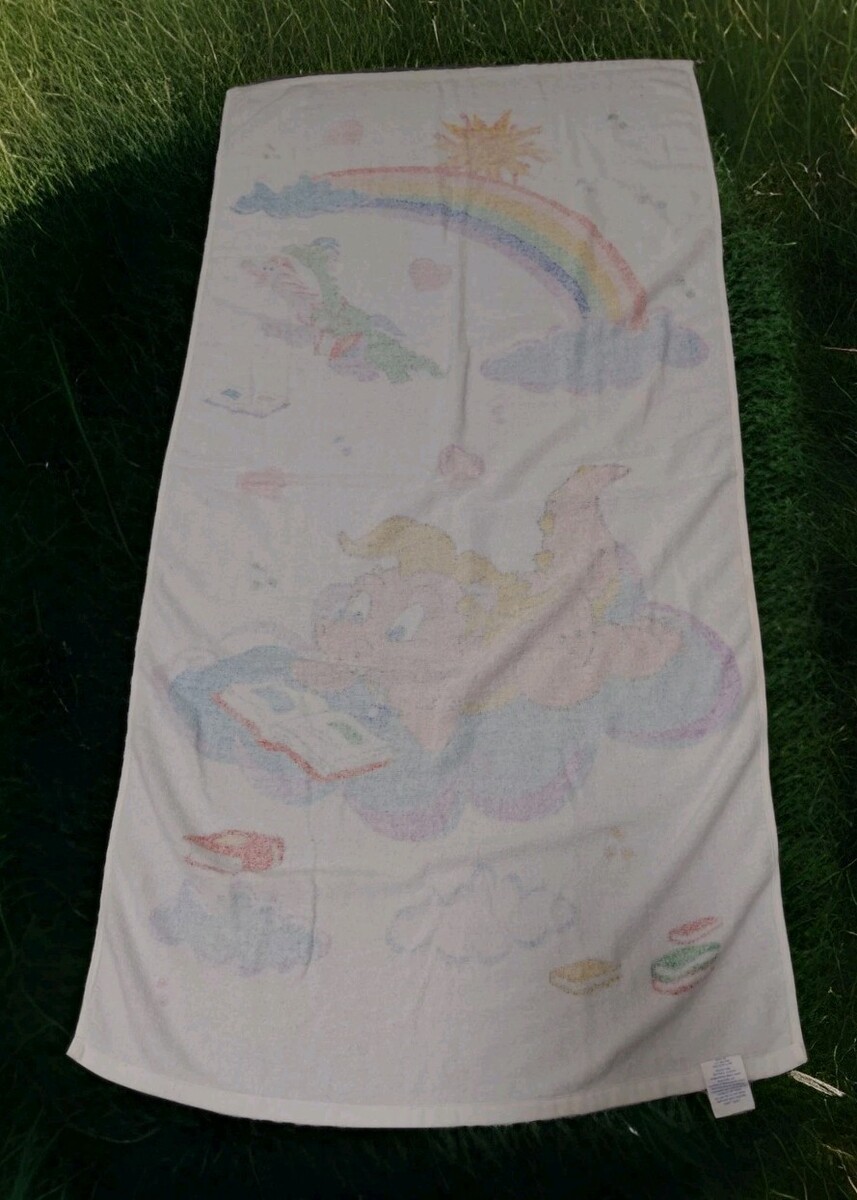 This Vintage Dragon Tales Y2K Cassie, Wheezie, and Zak Terry Cloth Bath Towel is a rare find from the early 2000s. Made of cotton and featuring a colorful multicolor design, this rectangle-shaped towel showcases characters from the popular animated series Dragon Tales.