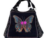 Vintage Early 2000s Boho Butterfly Beaded Velvet Tote Bag – Black Embroidered Sh