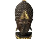 Vintage Early 2000s Hand-Carved Wooden Buddha Head Sculpture ? Dark Brown Gold Accents ? 15.5?