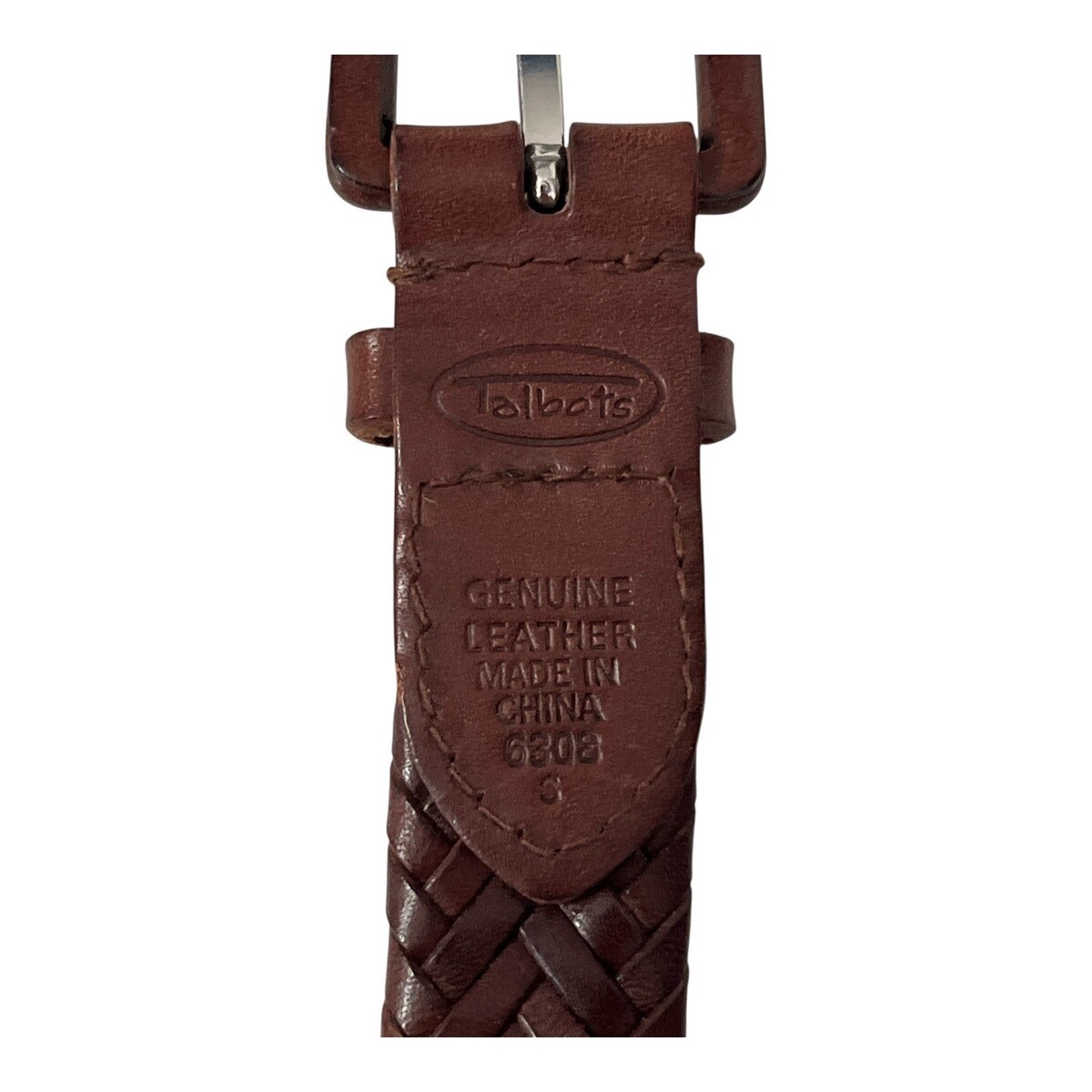 Classic early 2000s Talbots braided leather belt crafted from genuine brown leather with a woven design and a rectangular leather-covered buckle. This timeless accessory adds a polished touch to casual or dressy outfits and reflects the quality craftsmanship of Talbots pieces from that era.