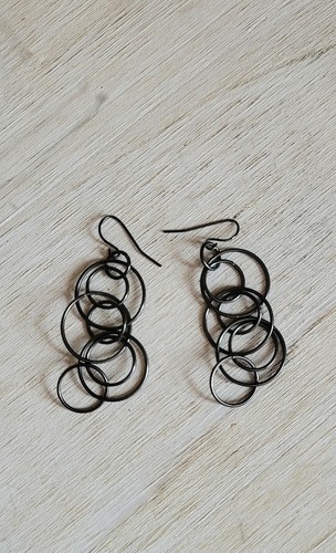 Awesome circles abstract loop earrings. Never used. NOS. Vintage and handmade from the state of Maine