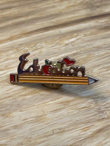 - Vintage Education Teacher Tac Lapel Hat Pin Apple Pencil KG JD
