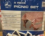 Vintage Egret Picnic Table 9 Piece Cover Red Gingham Check Tablecloth Vinyl Pad