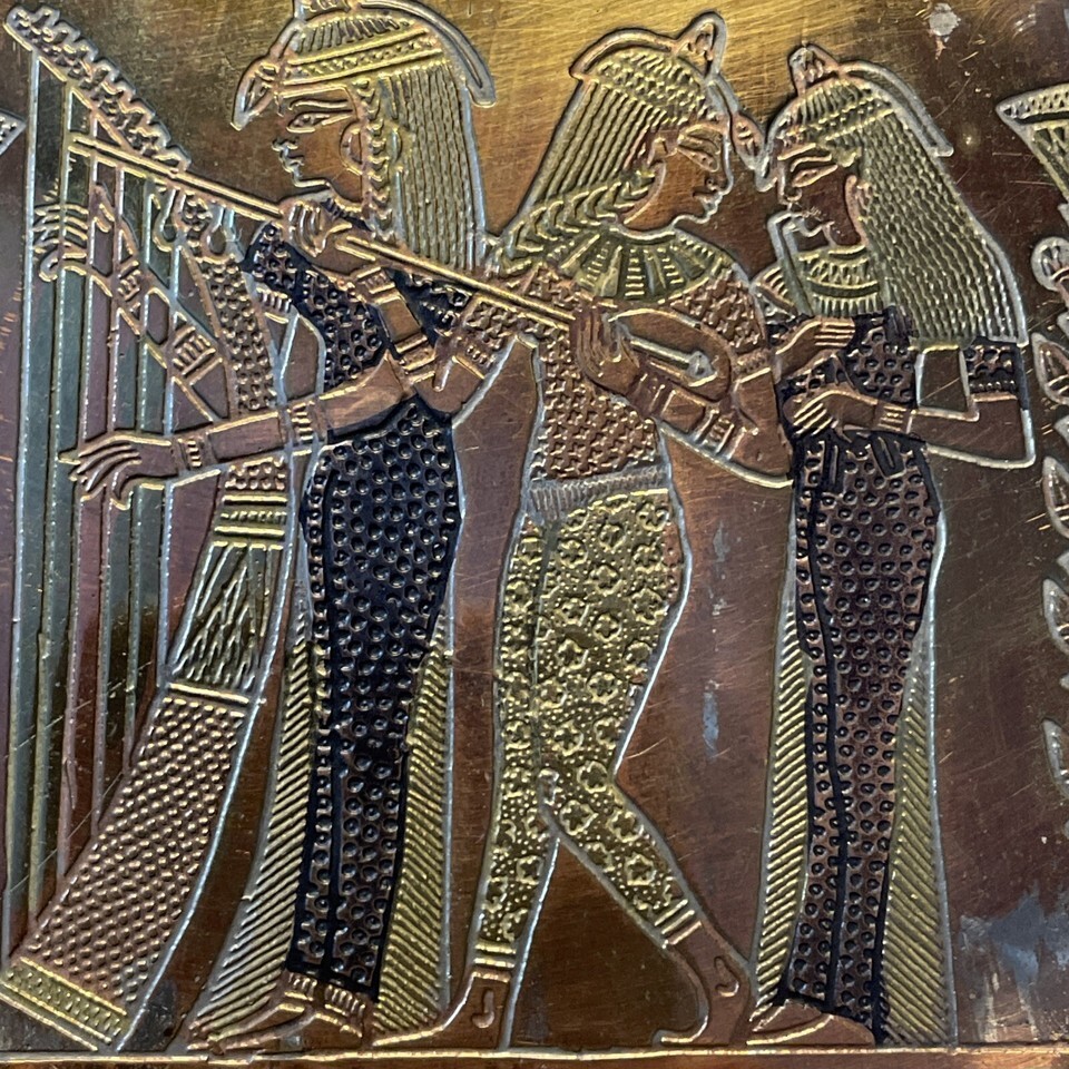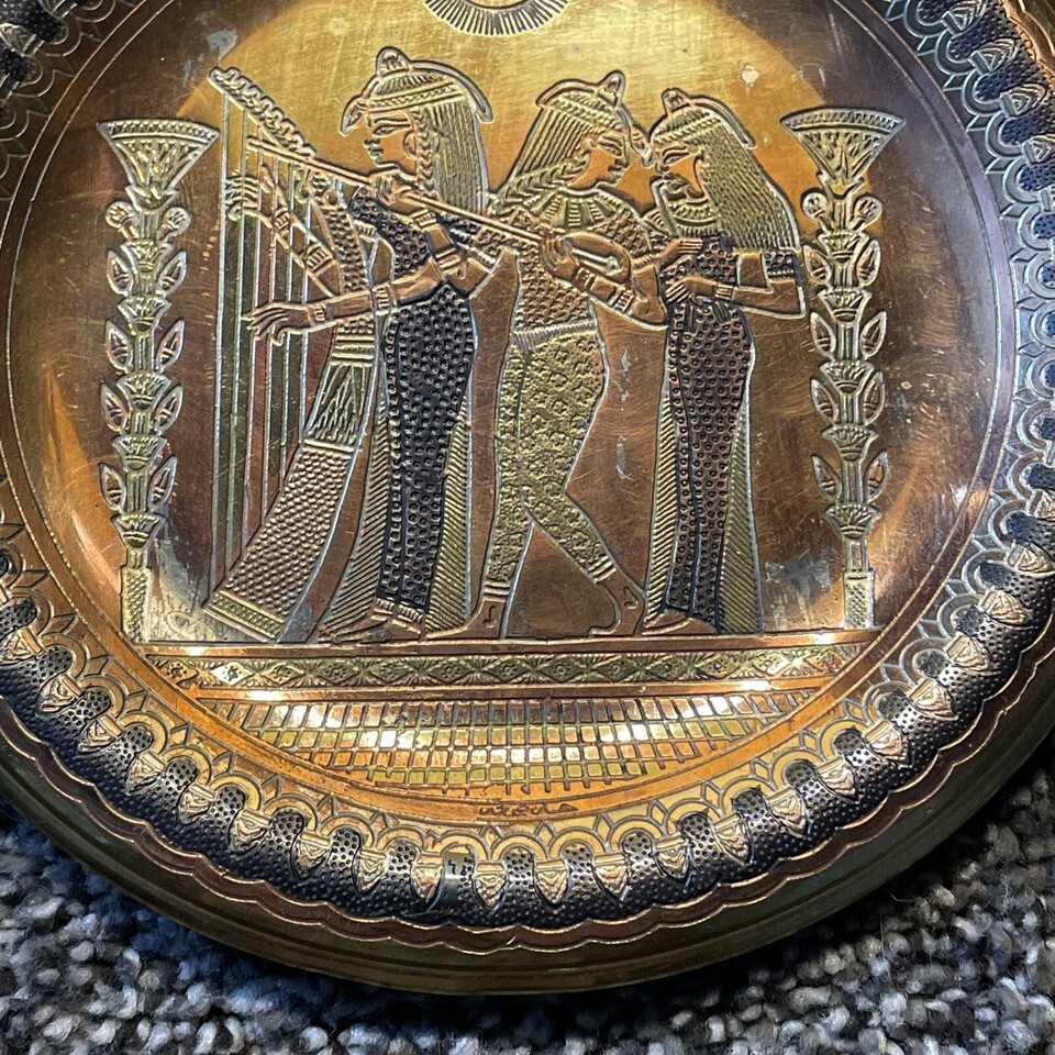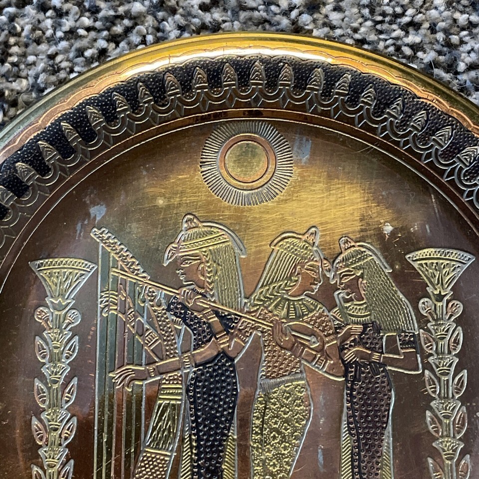 - Vintage Egyptian Figures Metal Engraved Wall Plate 5.5” Round