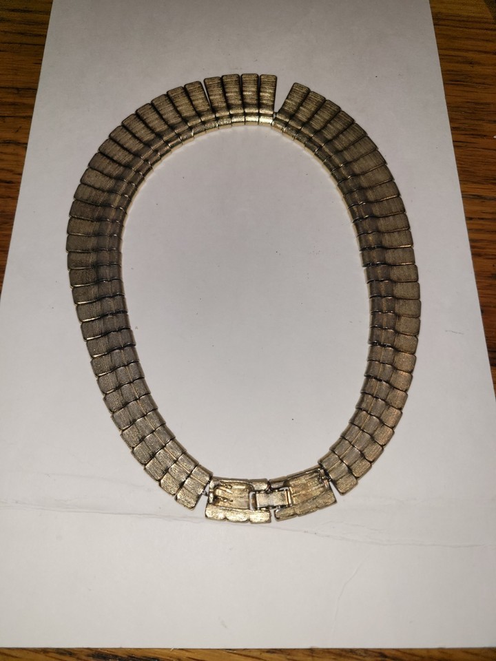 - Vintage Egyptian Revival Gold Tone Disc Panel Choker Necklace Vintage