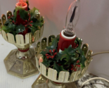Plastic faux candle lamps with Holly. One measures approx 8.5? tall. The other measures approx 8? tall. Tested and 1 working.
