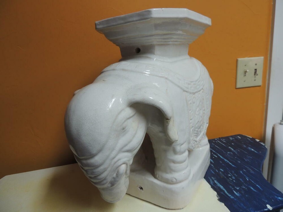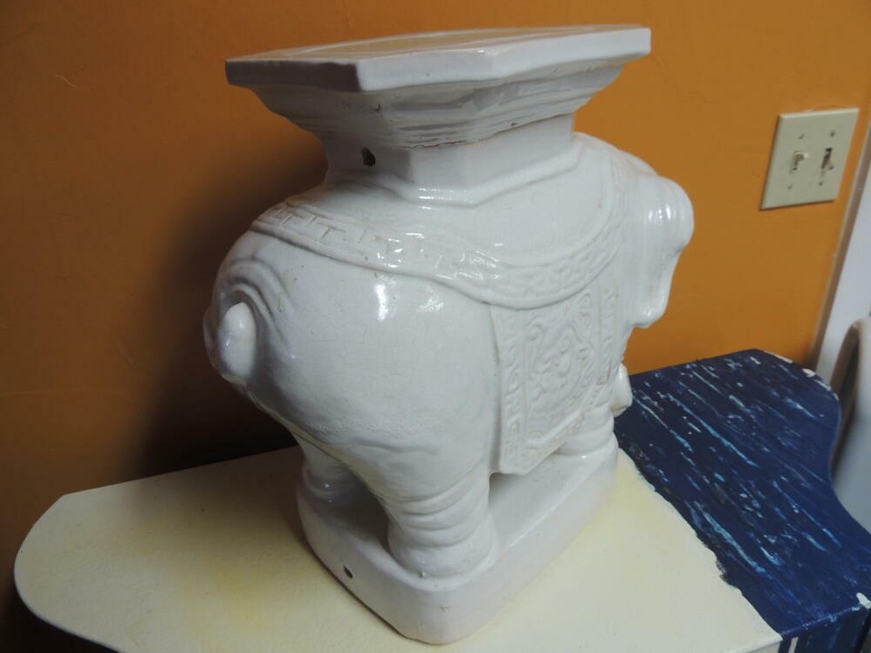 - Vintage Elephant 15"x18" Stoneware/ Ceramic Garden Stool Side Table Plant Mudman