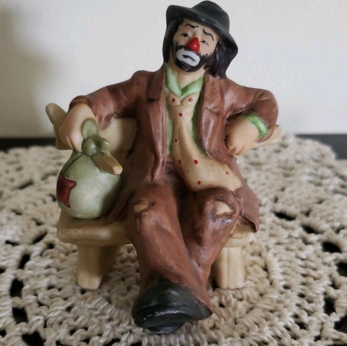- Vintage Emmett Kelly Jr. Porcelain Clown Miniature Figurine "Sitting On Bench"