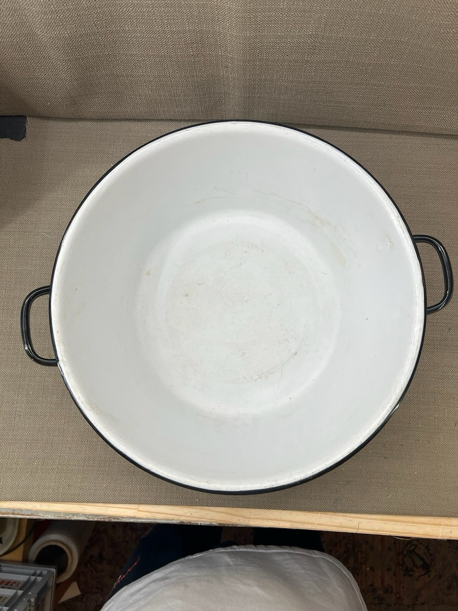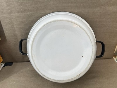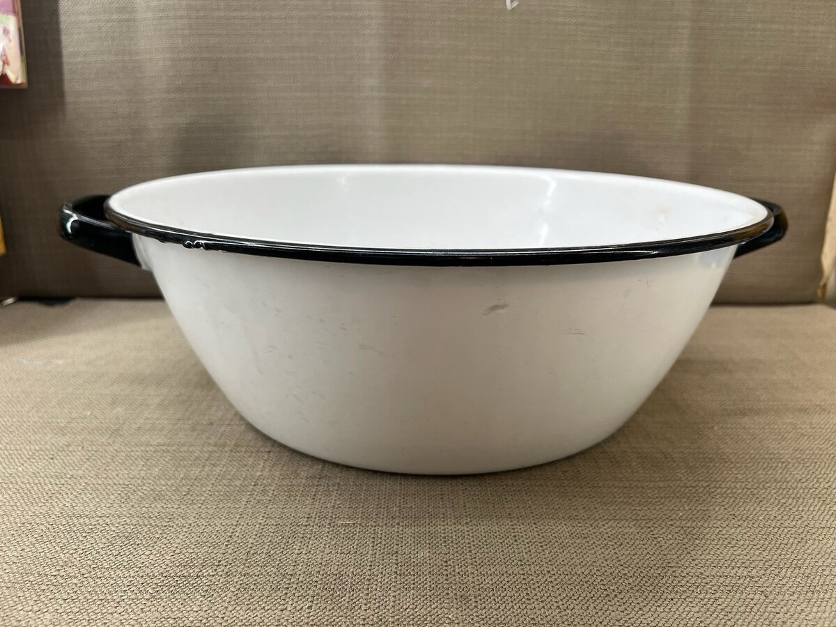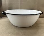 - Vintage Enamel Farmhouse Wash Bowl Basin White with Black Trim 14x14x5" Handles