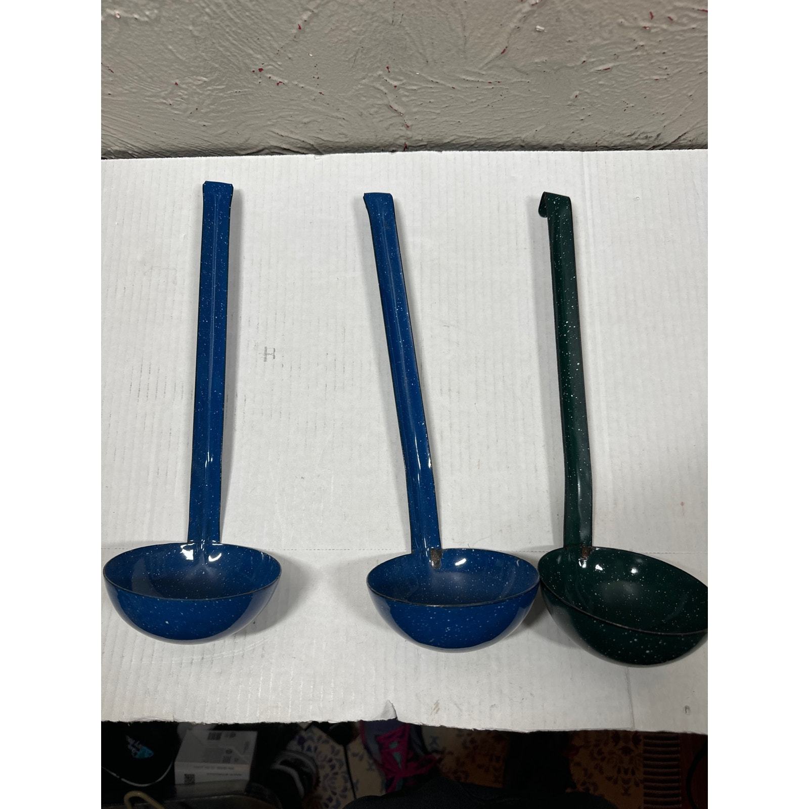 - Vintage Enamelware Large Ladle Dipper Graniteware Speckled Blue 12 Inch lot of 3