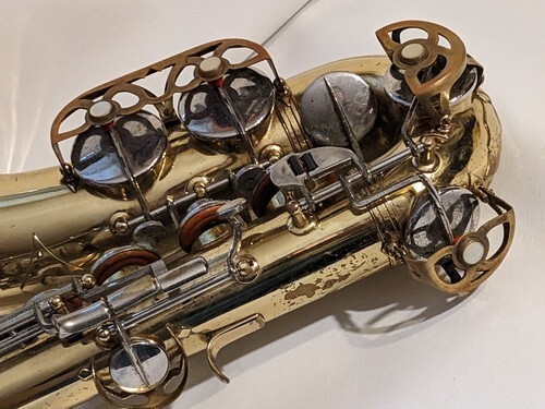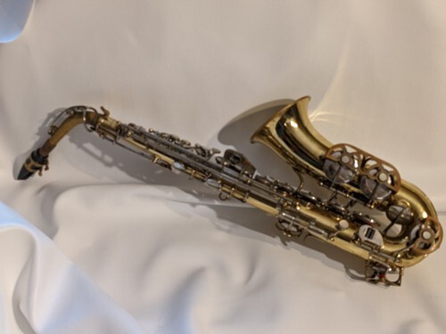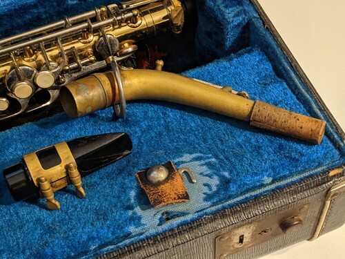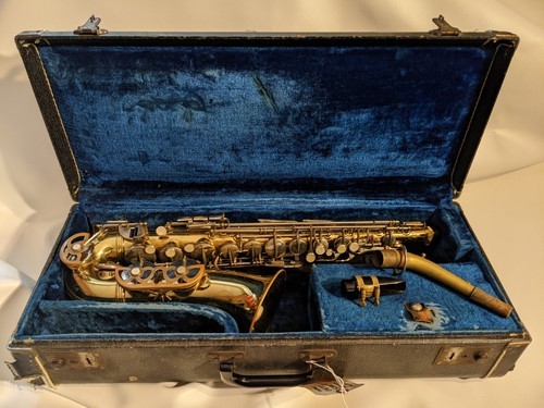 In vendita e un sassofono vintage Evette Schaeffer Paris France usato con custodia Pearl 1912