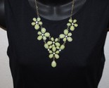 - Vintage Faceted Light Green Acrylic Rhinestone Flower Necklace Gold Tone 14"+