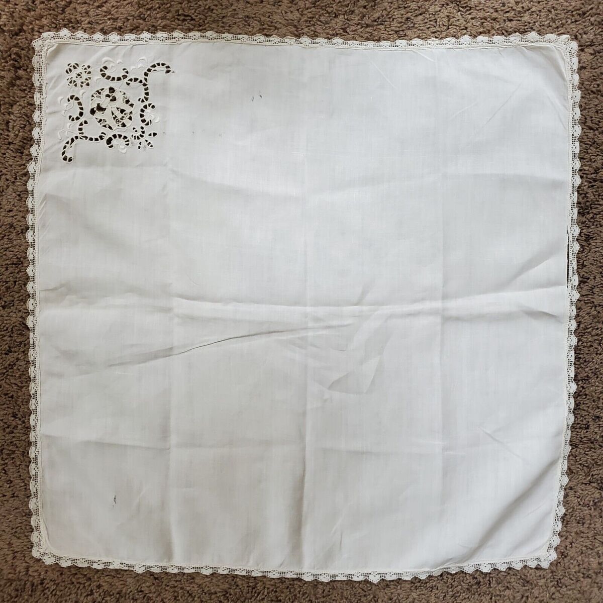 Estate find, good condition, small defects including holes, yellowing, loose threads, see pics
