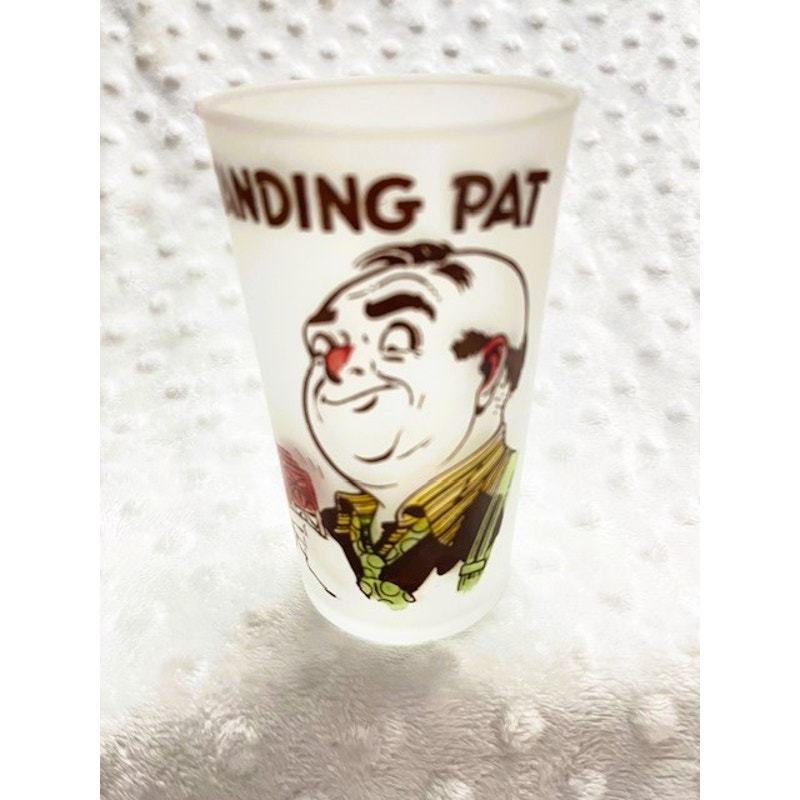 Vintage Federal Glass Frosted Tumbler Caricature Gambling Poker Glasses-3 RARE. Glasses are from the 1950s and feature funny scenes of gambling playing poker. Conversation pieces for anybody's bar. Measure 4 1/2" tall, 2 5/8" across rim, and hold apprx 12oz. All 3 are in excellent condition with no cracks, breaks, or chips. Paint on the glasses intact. Hand wash only. Comes from a smoke free, pet free home.