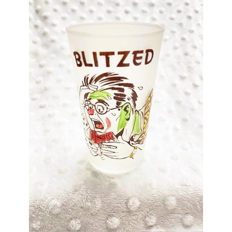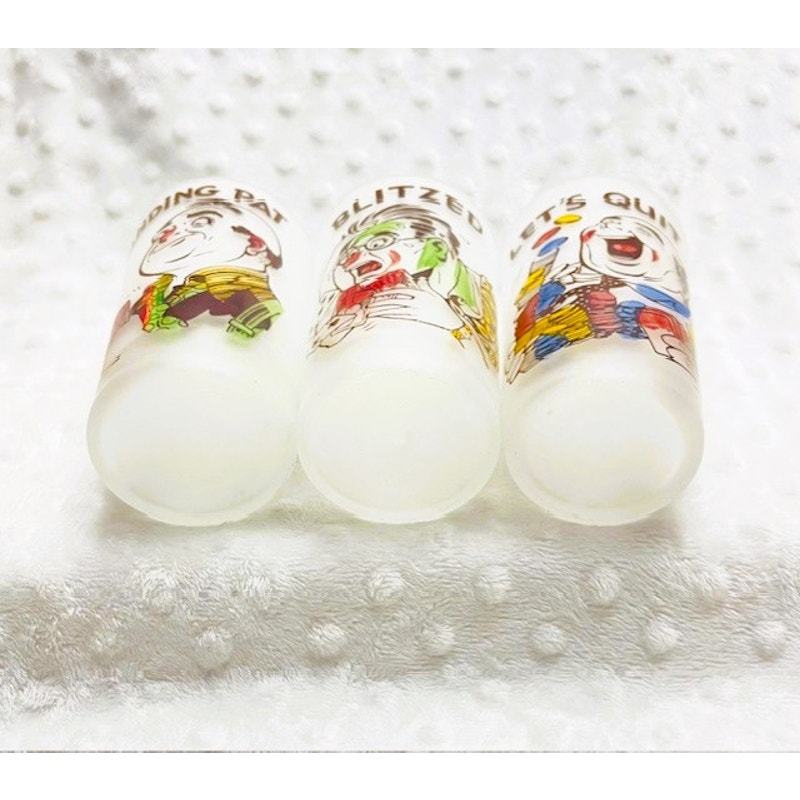 - Vintage Federal Glass Frosted Tumbler Caricature Gambling Poker Glasses-3 RARE