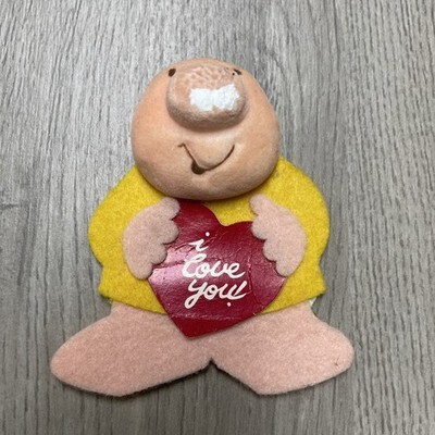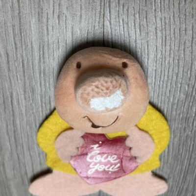 Pre owned, good condition for age. Head is made of foam. The body is felt. The heart is paper and has some bends. The nose has some marks and missing material. Back side is felt and has some residue but is not sticky. I could not find another one of these listed anywhere. May have been by American Greetings.