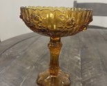 Vintage Fenton Amber Honey Glass Compote Cabbage Rose Pedestal Candy Relish