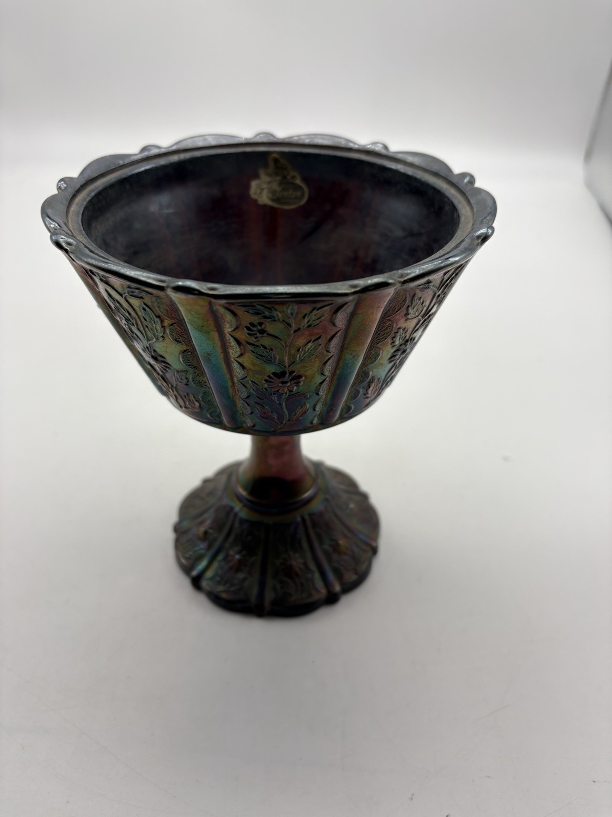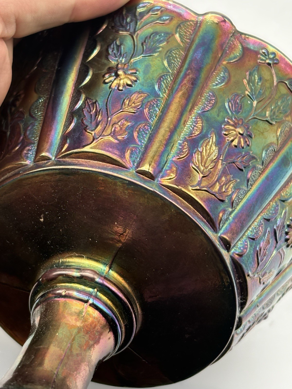 - Vintage Fenton Carnival Glass Iridescent Footed Compote Bowl Candy Dish 6" Tall