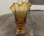 - Vintage Fenton Glass Amber CA Valencia Handkerchief 7” Vase #8359